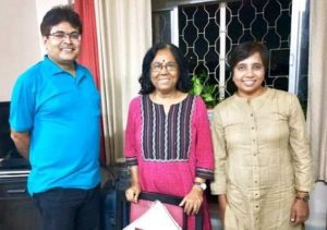 ১) মাঝে সুদীপ্তা সেনগুপ্ত। তাঁর বাঁ পাশে নীলাঞ্জনা সরকার, ডানে দেবদীপ চক্রবর্তী।
