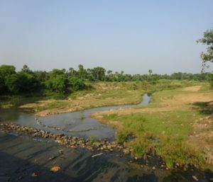 ঘরে ঢুকে বিছানায় গা এলিয়ে দিয়েছি। কিন্তু ঘুম আসে না। শনিবারের হাটের ছবিগুলো মাথার মধ্যে কিলবিল করছে। ভাবছি, কখন সকাল হবে। কতক্ষণে কোপাইয়ের কাছে যাব। ভাবতে ভাবতে একসময়ে চোখ বুজে আসে। যখন ঘুম ভাঙল, তখন ঘরের বাইরে রোদ ঝলমল করছে। দেরি না করে প্রাত-রাশ সেরে তৈরি হয়ে নিলাম। অতিথি নিবাসের সামনেই পেয়ে গেলাম একটি টোটো। চলেছি কোপাইয়ের দিকে। টোটোটি আমি সারাদিনের জন্য রিজার্ভ করে নিয়েছিলাম। পিয়রসন সেতুর ওপর টোটো এসে থামল। নীচ দিয়ে নীরবে বয়ে চলেছে কোপাই। কবির কথায়, ‘আমাদের ছোটো নদী চলে বাঁকে বাঁকে।’ ঐ সেতুর ঢাল দিয়ে নেমে তার পাড়ে এসে দাঁড়ালাম। দু’চোখ ভরে কোপাইকে দেখছি। চরার গ্রাসে সে আজ মৃতপ্রায়।