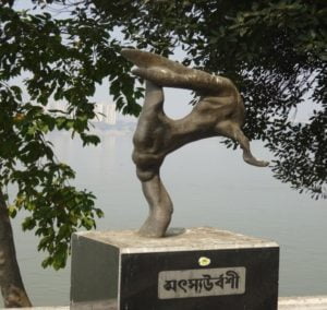 বাড়িটির দৌলতে রূপপুর পঞ্চায়েতের অখ্যাত এই পল্লি যে পর্যটন মানচিত্রে জাযগা করে নিয়েছে, রাজ্যের পর্যটন দফতর তার খোঁজ রাখে কিনা, কে জানে। এখান থেকে প্রকৃতি ভবনে আসার পথে দু’দিকে কোথাও শাল, কোথাও সোনাঝুরির বন। অভ্রকুচির মতো রোদের টুকরো গাছের ফাঁকফোকর দিয়ে ঠিকরে যাচ্ছে চারদিকে। সূর্য তখন মধ্য গগনে। খিদের জ্বালা মেটাতে টোটো থামিয়ে রাস্তার ধারে গজিয়ে ওঠা আদিবাসীদের একটি হোটেলে ঢুকে পড়লাম। ওদের হাতের রান্নার স্বাদ আগের দিনই অতিথি নিবাসে পেয়েছি। এখানে নতুন করে সেই তৃপ্তির স্বাদ পেলাম। এরপর প্রকৃতি ভবনে এসে চোখ আটকে গেল ‘মত্স্যউর্বশী’কে দেখে। পথের সঞ্চয়কে পাথেয় করে যিনি এই সংগ্রহশালাটি গড়ে তুলেছেন, সেই সুব্রত বসুর কথায়, ‘‘গাছের শুকনো ডালে প্রকৃতির ভাস্কর্য হয়ে সে একদিন ধরা দিয়েছিল। এখন সে ব্রোঞ্জে রূপান্তরিত হয়ে কলকাতা বন্দর ও পশ্চিমবঙ্গ সরকারের পৃষ্ঠপোষকতায় বাবুঘাটে স্রোতস্বিণী গঙ্গার পাড়ে স্থান পেয়েছে। এখানে সে শুধুমাত্র নৃত্যরতা মত্স্যপ্রাণের প্রতীক হয়ে ওঠেনি, বিবর্তনের ‘মেঘ, বৃষ্টি, রোদ্দুর’ যে অবিরত ছেনির আঘাতে ভাঙাগড়ার খেলায় নিমগ্ন, সেই ভাবনার রসদ জোগায়।’’