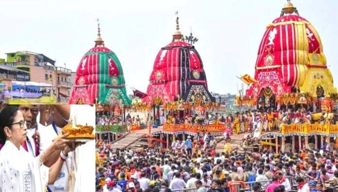 ডিজিটাল ডেস্ক, ২৭ জুন: শুক্রবার ছিল রথযাত্রা। পুরী থেকে দিঘা, মাহেশ, মায়াপুর থেকে গঙ্গাসাগর– গোটা দেশের বিভিন্ন প্রান্তে এ দিন এই উৎসব পালিত হয়। ফি বছরের মতো এ বারেও পুরীতে রথের রশিতে টান দিতে অগণিত ভক্তের সমাগম হয়। পুরীর সঙ্গে তাল মিলিয়ে হুগলির মাহেশে রথযাত্রায় জনপ্লাবন আছড়ে পড়ে। দিঘায় তাঁর উপহার দেওয়া সোনার ঝাড়ু দিয়ে রাস্তা ঝাঁট দিয়ে রথযাত্রার সূচনা পশ্চিম বঙ্গের মুখ্যমন্ত্রী মমতা বন্দ্যোপাধ্যায়। তার আগে তিনটি রথের সামনেই আরতি করেন মুখ্যমন্ত্রী।